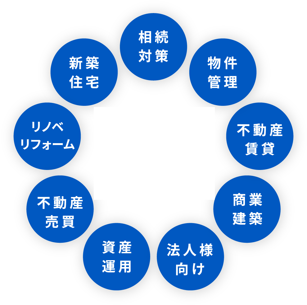 | 主な取扱物件 | 貨アパ-ト・マンション 貸戸建ほか マンスリ-貨事務所・店舗 駐車場 リロケ-ション 貸工場 !倉庫 売新築マンション 売新築一戸建 売中古マンション 売中古一戸建 売土地 壳工場·倉庫 売事所·店舗 投資用・その他 リゾ-ト物件 |